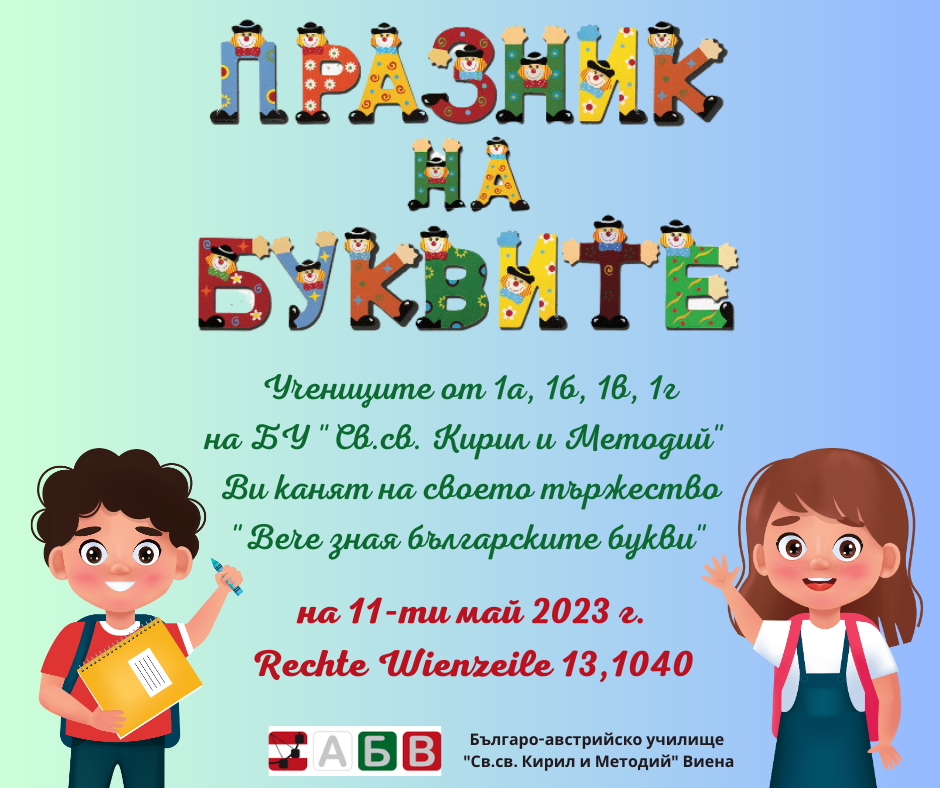 Ви канят на своето тържество "Вече зная българските букви"